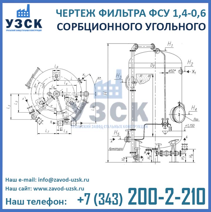 Если вы ищете фильтры ФСУ-1,4-0,6 в Стерлитамаке от изготовителя, то Вы на правильном пути! Уральский завод стальных конструкций – непосредственный производитель сорбционных фильтров ФСУ, предлагающий самые выгодные цены на ФСУ-1.4-0.6 в Стерлитамаке. По окончании процесса производства угольные фильтры проходят гидравлические испытания пробным давлением 0,9 МПа на аттестованном гидростенде, находящимся в собственности завода УЗСК. Мы гарантируем высокое качество выпускаемой продукции, и в этом уже убедились ведущие предприятия промышленного сектора России и стран ЕАЭС (см. раздел «Наши клиенты»).