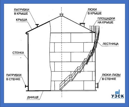 Конструкция резервуара 400 м3 состоит из:
